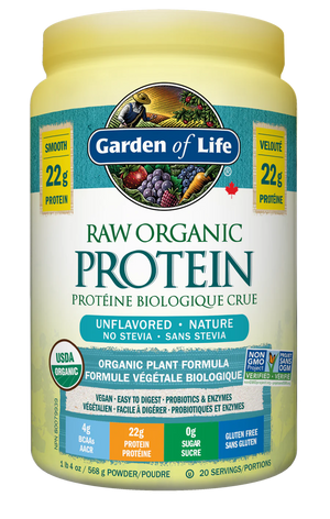 Raw Organic Protein contains RAW Food-Created fat-soluble vitamins A, D, E and K and supports intestinal health with live probiotics all while helping digest proteins with its enzymes. Raw matters because heat can denature proteins, reducing their availability to your body. But Garden of Life’s Certified Organic plant proteins are different—always gently produced at low temperatures, without any added fillers or carriers, preserving their complete amino acid integrity.
