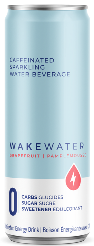Sugar and sweetener free caffeinated sparkling water. Flavoured naturally, WakeWater Lemon is a refreshing beverage that provides clean energy to help you power through the day. With 85mg of green tea caffeine, it is equivalent to an 8oz small cup of coffee.