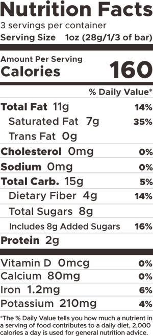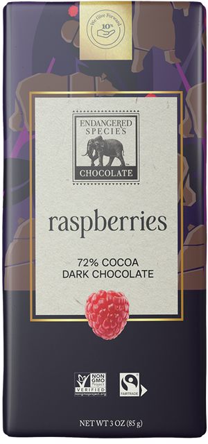 Bold, dark chocolate with a bright side—this bar brings you the very best of real cacao taste, blended with American grown raspberries that add just a hint of tart, fruity flavor. It’s love at first bite.