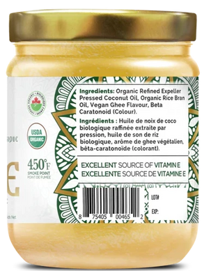 Ecoideas Organic Vegan Ghee is an alternative to traditional ghee with the same savory and rich flavour, but plant-based! Crafted with a unique blend of premium coconut and rice bran oils making the ideal superfood for many lifestyles!