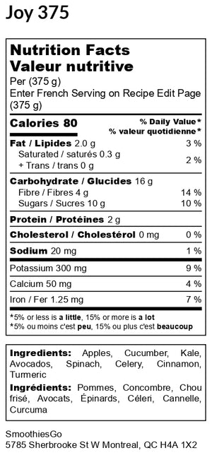 Ingredients: Apples, Cucumber, Kale, Spinach, Avocado, Celery, Lemon, Organic Cinnamon, Turmeric.