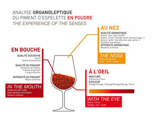 Used as a finishing touch from appetizers to desserts, it adds a pleasant warmth and a fruity, distinctively smoky note, in addition to a lovely orangy-red colour.